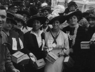 This clip shows Bill (Arthur Tauchert), the 'sentimental bloke’ of the film’s title, and his friend Ginger Mick (Gilbert Emery) at an illegal two-up game at the back of premises in inner-city Sydney. A police raid disperses the game after a plain-clothes police officer tricks the 'cockatoo’ (lookout) keeping watch in the laneway outside. Pursued by police, men flee, some over fences and rooftops. After a long chase Ginger Mick hides in a horse feed barrel, but Bill is apprehended after a 'stoush’ with a police officer. The clip is silent and black and white, and includes four intertitles.