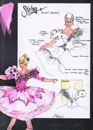 Sketch of the costume worn by the character Shirley Hastings in Strictly Ballroom, by Angus Strathie.