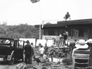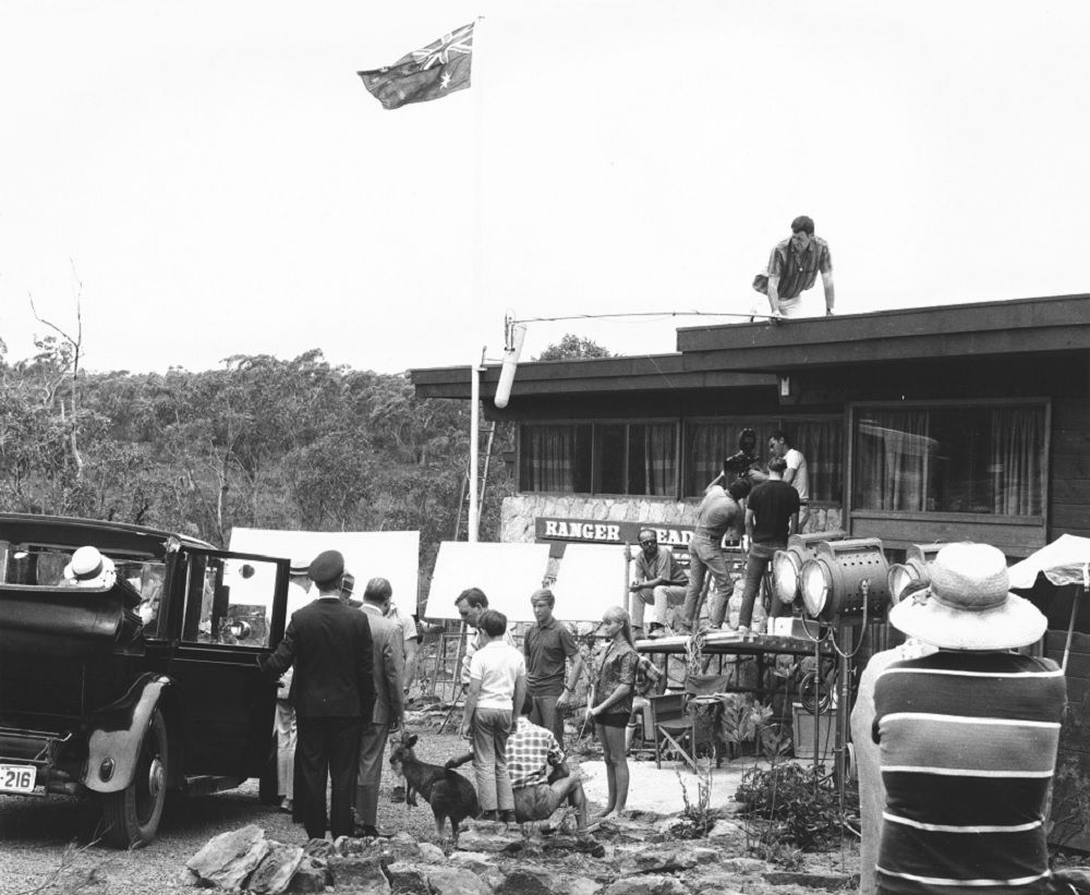The Skippy production crew: Cinematographers from left to right are: John Leake, Keith Loone, Graham Lind, Peter Menzies (Director of Photography), Bill Grimmond, Bob Wright, Eddie Waddell (the camera assistant) and John Williams (electrician).