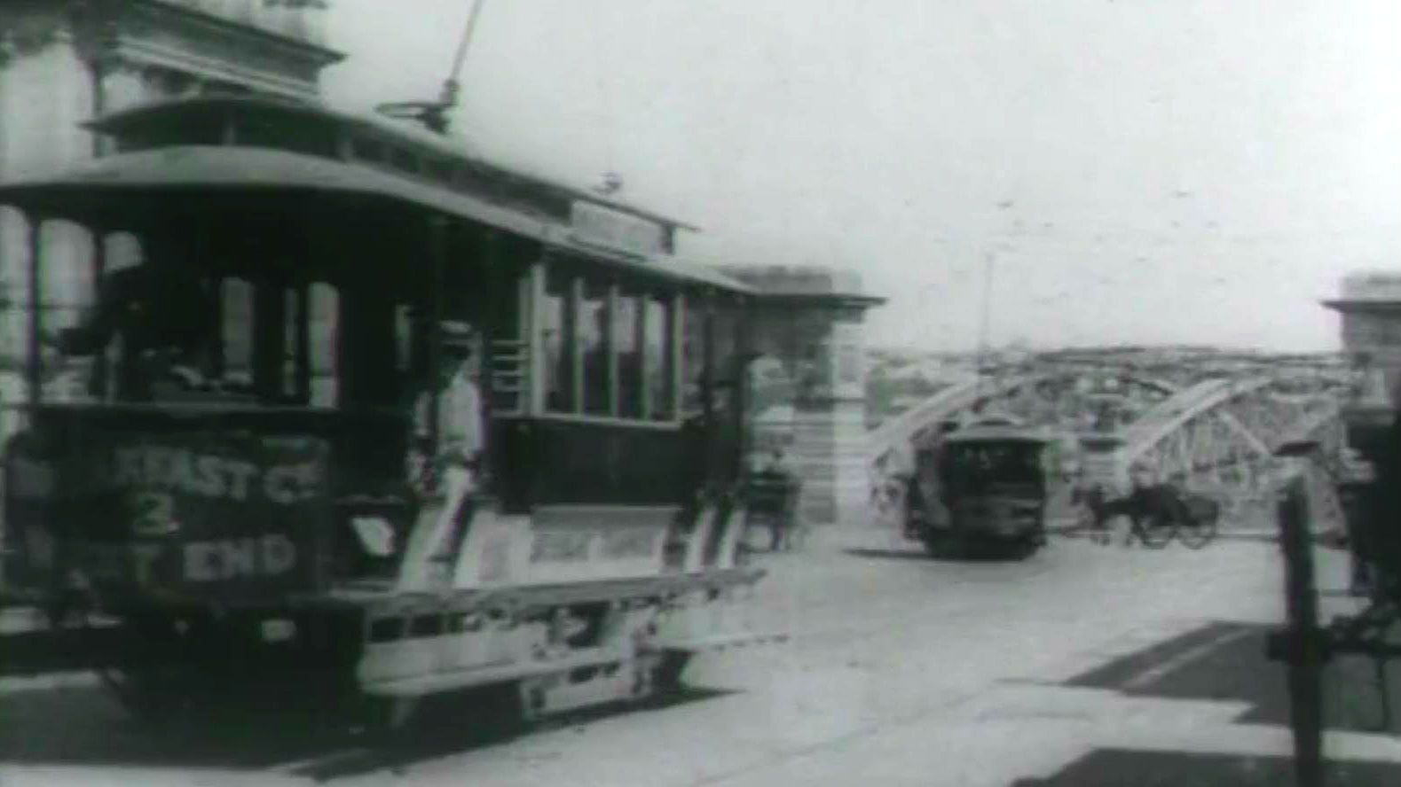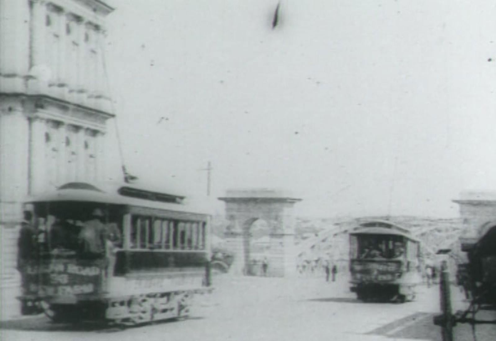 This actuality footage from 1899 shows the unloading of timber spars from the SS Katoomba at a busy wharf in Brisbane.