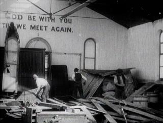 Found in poor condition, this film is damaged from ferrotyping and ‘vinegar syndrome’. Ferrotyping is a change in the surface characteristics of a gelatin emulsion caused by the swelling of the gelatin pressing against the surface. Vinegar syndrome is the term used to describe the chemical reaction produced from the deterioration of cellulose triacetate as it begins to decompose. Until recently, there has been no way of stopping or reversing the results of vinegar syndrome but by the early 1990s Eastman Kodak developed a promising new technology called the Molecular Sieve which has the ability to retard this reaction.