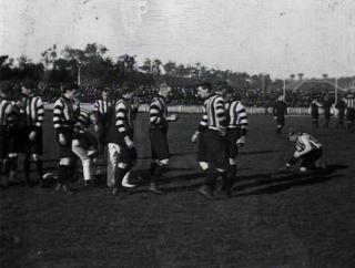 'The St Kilda Esplanade on Boxing Day' is a vivid snapshot of public life on a sunny day in Melbourne. Unfortunately, there is no record of who took this footage or whether it was from a longer documentary or newsreel item. It appears likely to be a fragment, as the image abruptly cuts out about two and a half minutes into the film. The steady camerawork and deliberate editing give it a produced feel that makes it unlikely to have been a home movie. At the beginning of the footage, there is a title card that identifies the location and time of year. The approximate date of production is determined by the date on the film stock, placing it just before the First World War.
