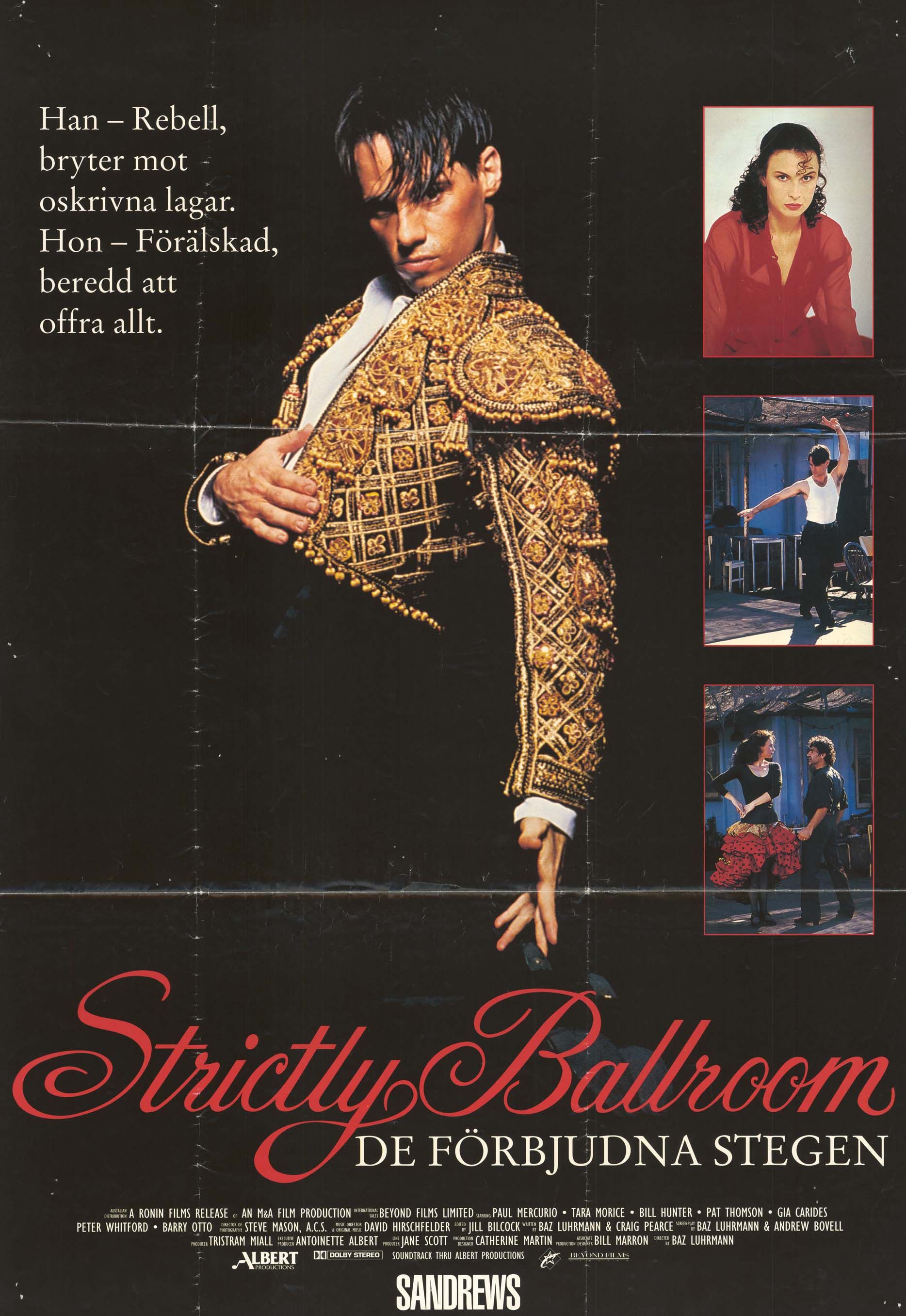 Swedish one-sheet film poster for Strictly Ballroom, released in that country on 11 December 1992 with the subtitle 'De förbjudna stegen' ('The forbidden steps').
