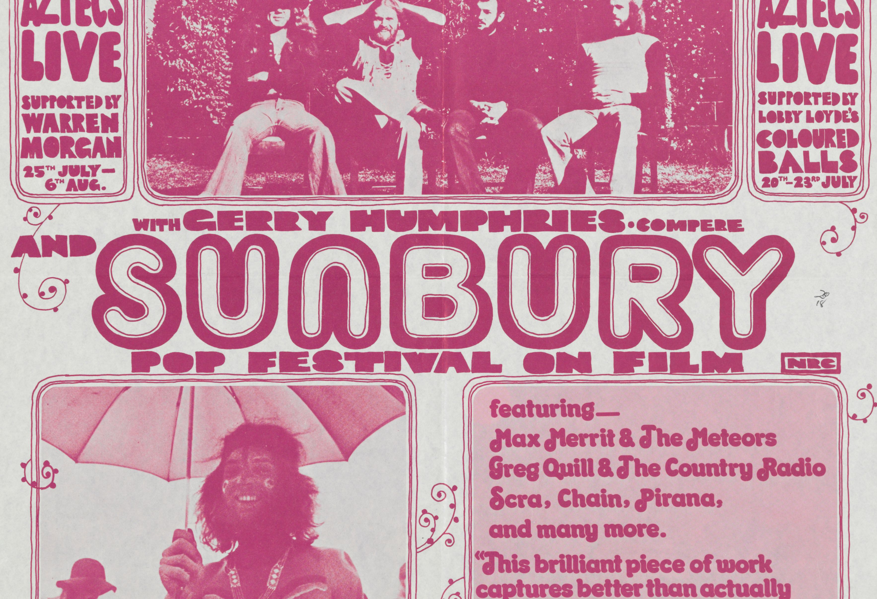 Promoted by a group of television professionals who came together under Odessa Promotions, the event was captured by John Dixon and Ray Wagstaff in the documentary Sunbury ‘72.