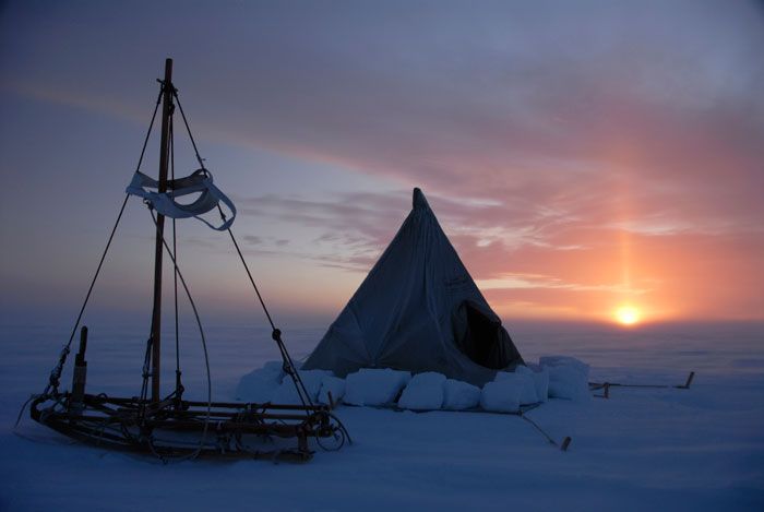 Sunset over Tim Jarvis and John Stoukalo’s campsite