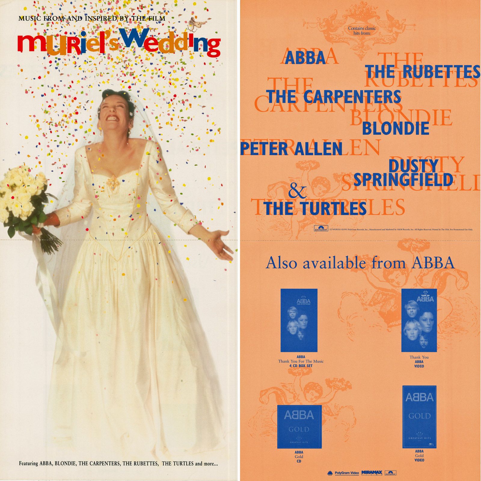 US daybill poster for the release of Muriel's Wedding. The back of the poster highlights the soundtrack, a key component of the film.
