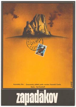 In this 1976 Czech poster, with artwork by Zdeněk Vlach, the film title appears below an image of a rock outcrop against a yellow-and-brown background.