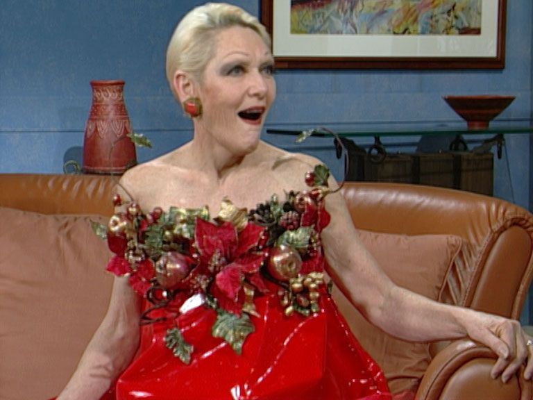 Jeanne Little – dressed in one of her special Christmas outfits that she made herself – brings the magic of Christmas to viewers of Good Morning Australia in 1994.