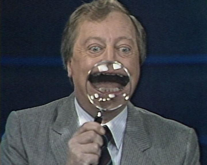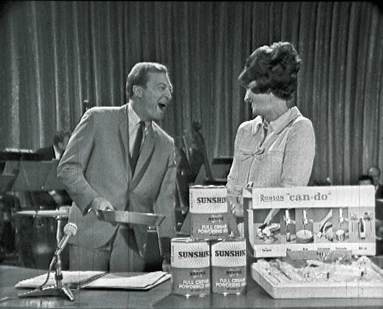 IMT scriptwriter Mike McColl Jones recalls that Sturgess often had her script glued to the inside of her newspaper, for when she was inevitably distracted by Graham's inspired ad libs. Graham knew that she was prone to 'breaking up' and would do his best to bring this on, with whatever it took! In this sketch, you can see both trying to disguise their laughter at the other's antics, and failing.