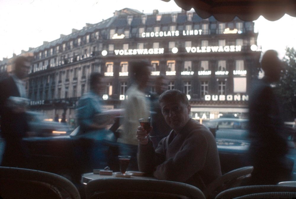 Graham Kennedy enjoying a drink at an outside cafe, Paris, 1961. Courtesy Gabrielle Beams.