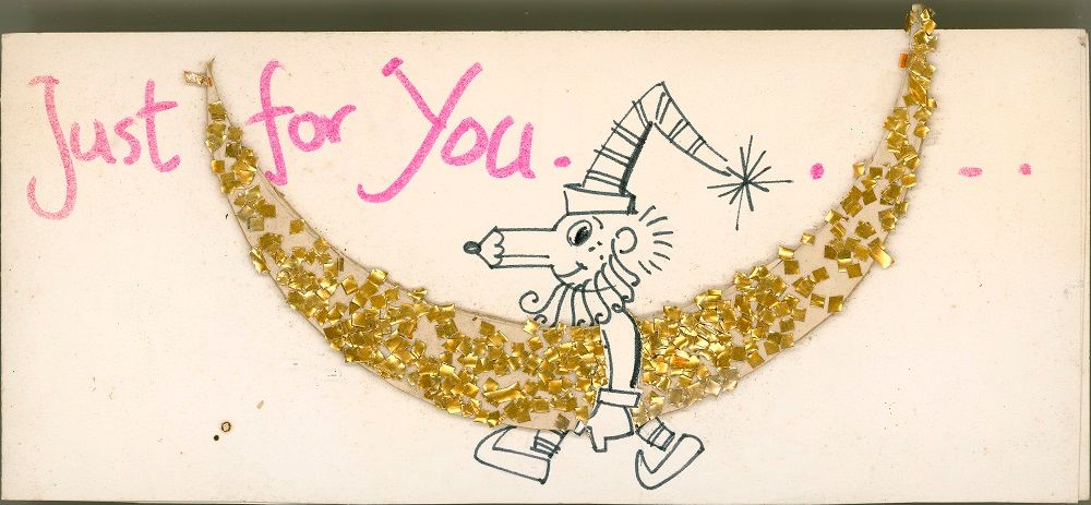 A ‘Happy Anniversary’ card (above right) marks the 5th anniversary of Mr Squiggle on TV which occurred in 1965.