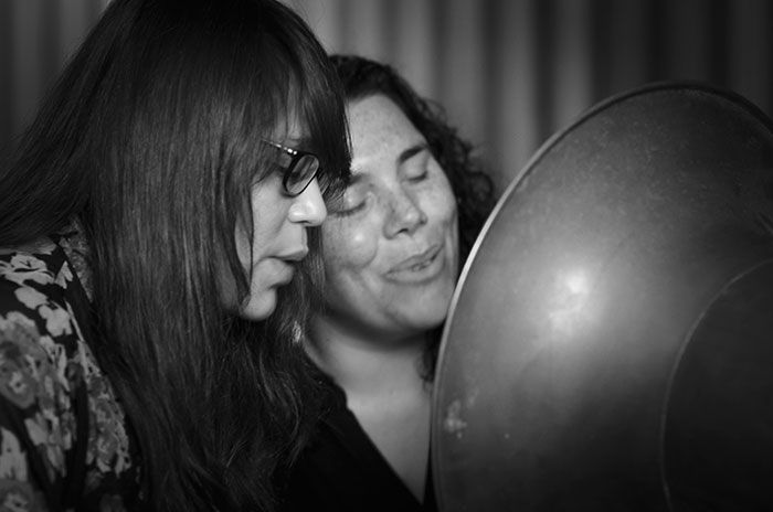Below: Stiff Gins (Kaleena Briggs and Nardi Simpson) recording ‘Dust’ at the NFSA, 4 September 2013.