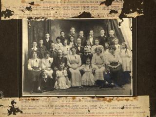 Quarry Hill Methodist Sunday School students who have passed a Sunday School examination, c.1909. Four people mentioned in the 1904 recording are pictured – Albert Henry Randall (third from the left in the second row), Miss Fraser (fourth from the left in the second row), Mr Williams (fifth from the left in the second row), JB Edwards (fifth from the left in the third row.) Photo kindly donated by Merren Cliff.