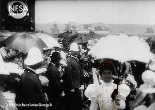 The 1896 Melbourne Cup Carnival was hailed as the best possible Melbourne Cup to have been filmed first. Colour and vibrancy had returned in the fashion stakes after the past several years of economic depression and punters gained generous wins at the expense of the turf agents when Newhaven won both the Derby and the Cup.