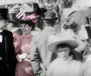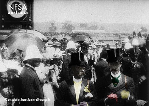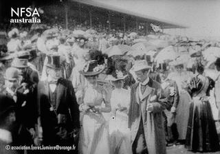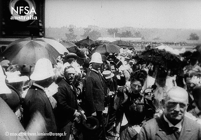 Marius Sestier and Henry Walter Barnett filmed these scenes at the 1896 Melbourne Cup Carnival, producing one of Australia’s oldest surviving films. It made a significant impact when screened around the country throughout 1896 and 1897. Audiences cheered and clapped when the Cup winner Newhaven appeared on the screen but the many famous faces recognised in the crowd also entranced audiences, a forerunner of today’s social pages.