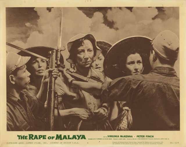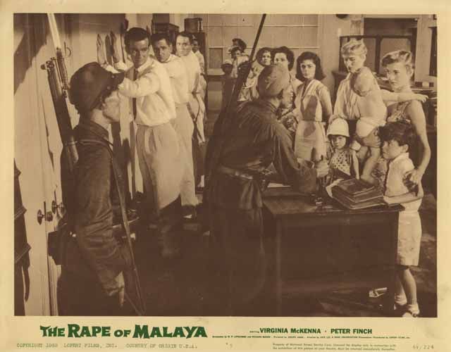 These lobby cards feature the US title for the film, The Rape of Malaya, and capture key dramatic moments in the story.