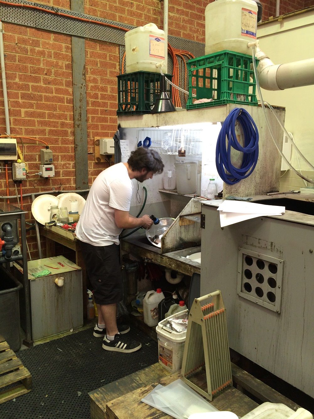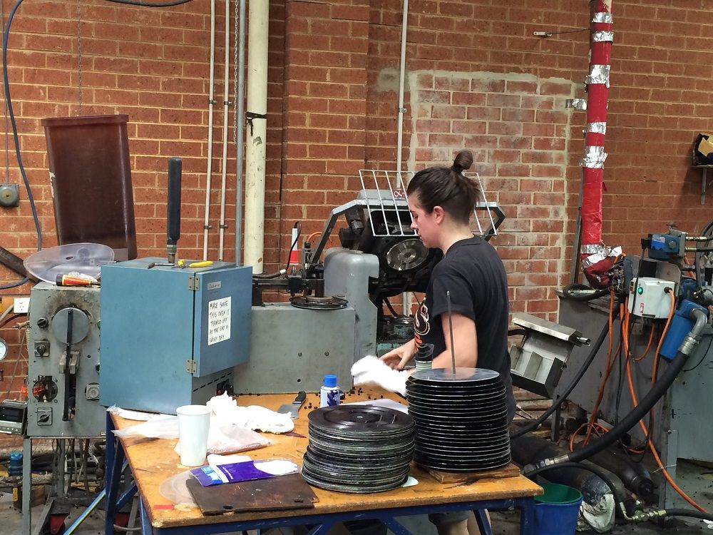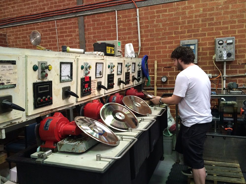 Touring the Zenith Records vinyl-pressing plant, 2016.