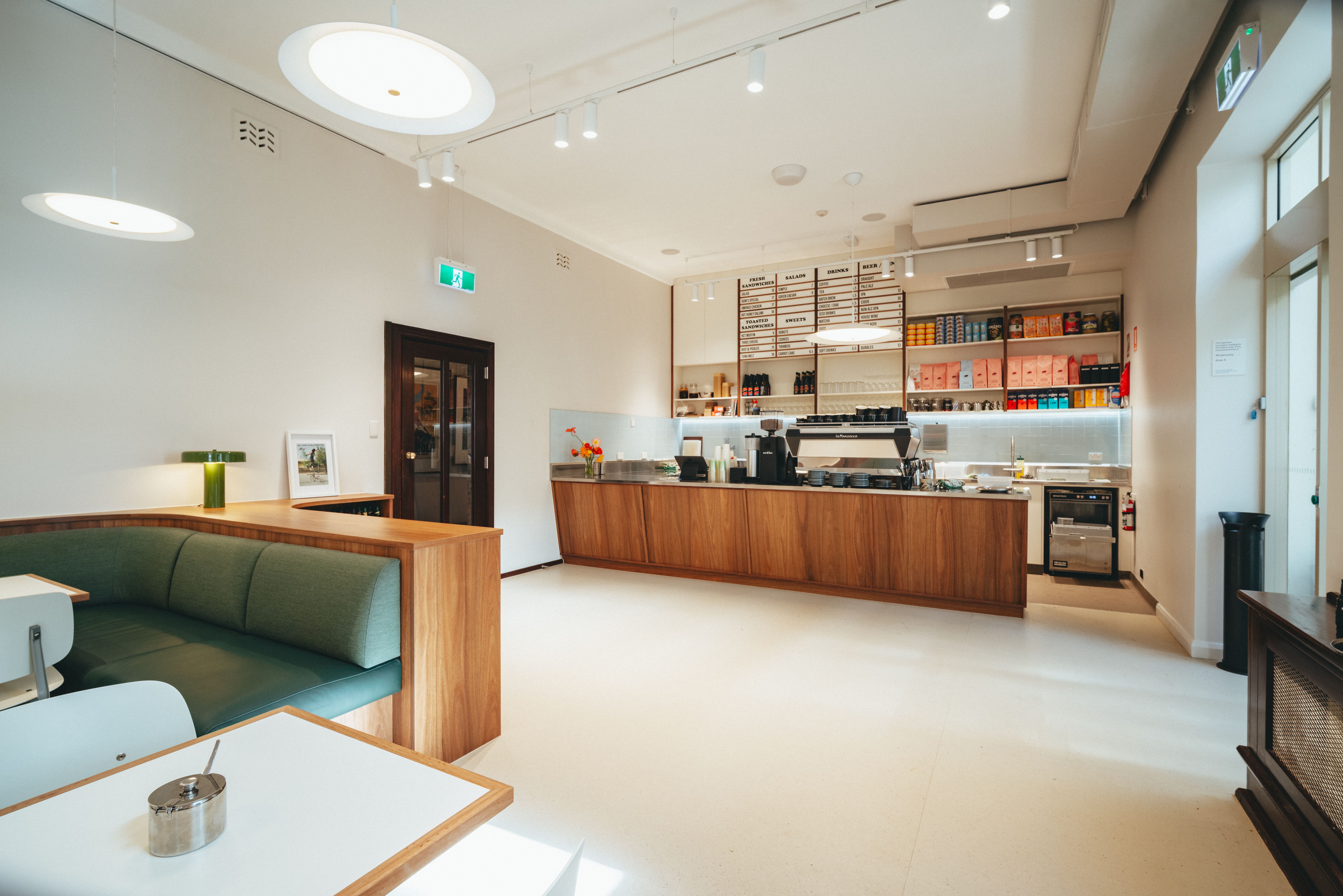 Modern deli and bar serving locally roasted coffee, pastries and signature sandwiches by day, transforming into an intimate wine bar by night.